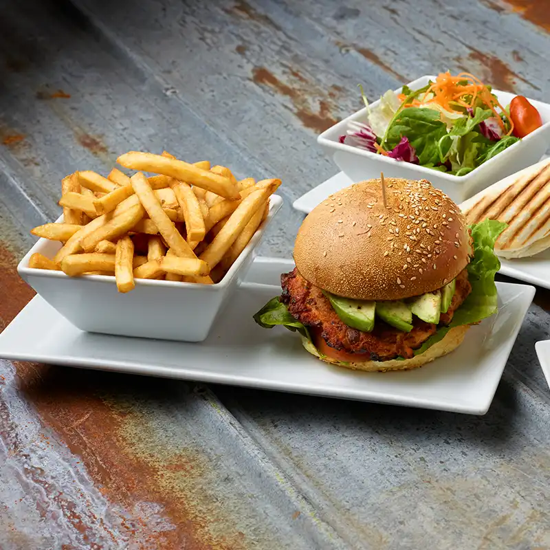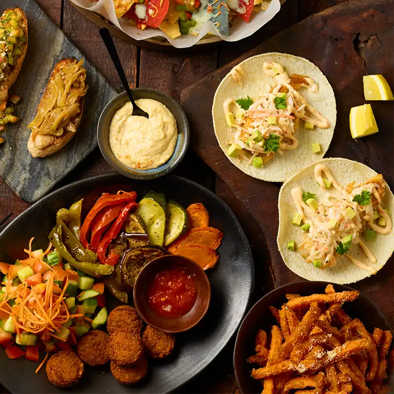 plant-based “chicken”, caramelized onion, served with pita 21.95