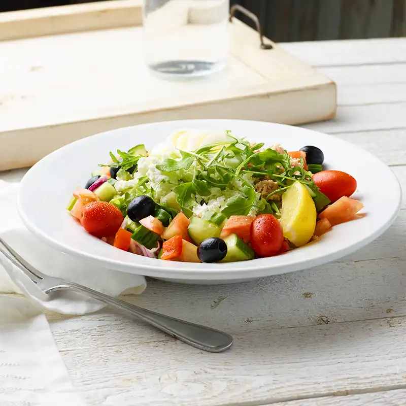 tuna, feta, avocado, tomato, cucumber, pepper, carrot, toasted seeds, lemon vinaigrette or tahini 24.95