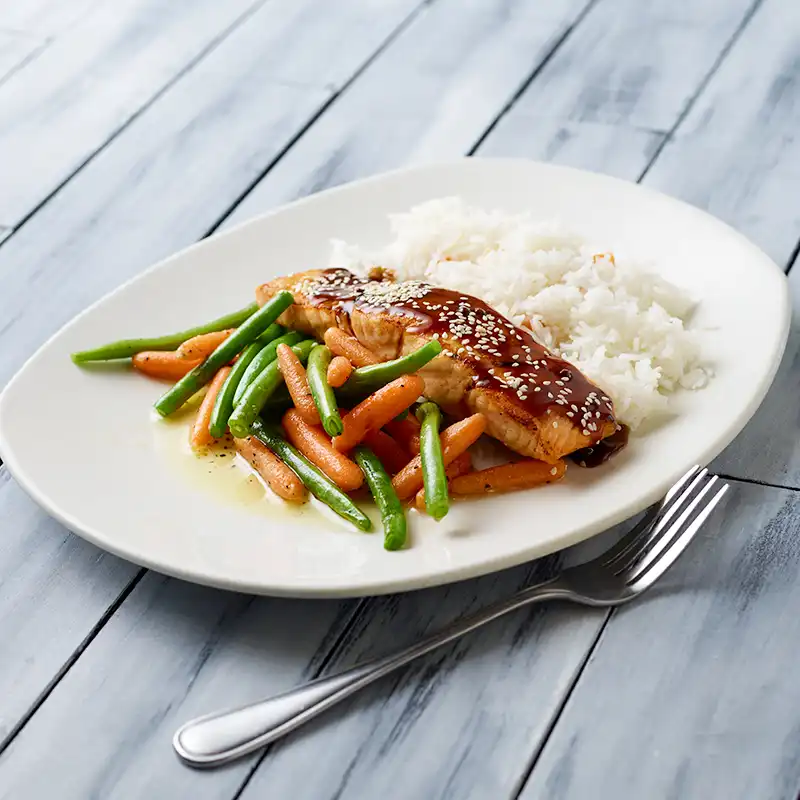 grilled salmon pieces, onion, grilled vegetables, teriyaki sauce 19.95