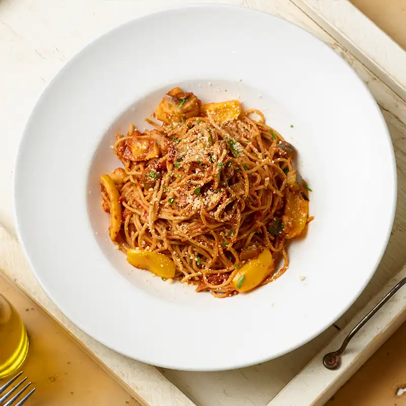 zucchini, mushroom, sundried tomatoes, eggplant, fresh herbs, tomato sauce 23.95