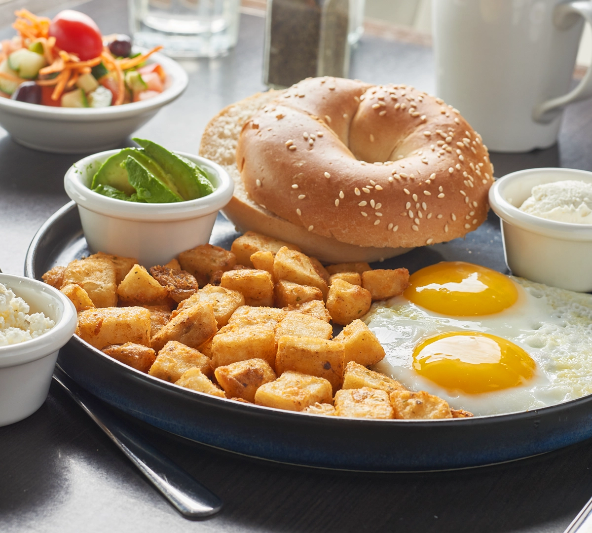 egg whites 2 | bagel with croissant 2 | potatoes with mixed greens 2 | potatoes with sweet potato or spicy fries 3 | potatoes with fruit, greek salad or israeli salad 3