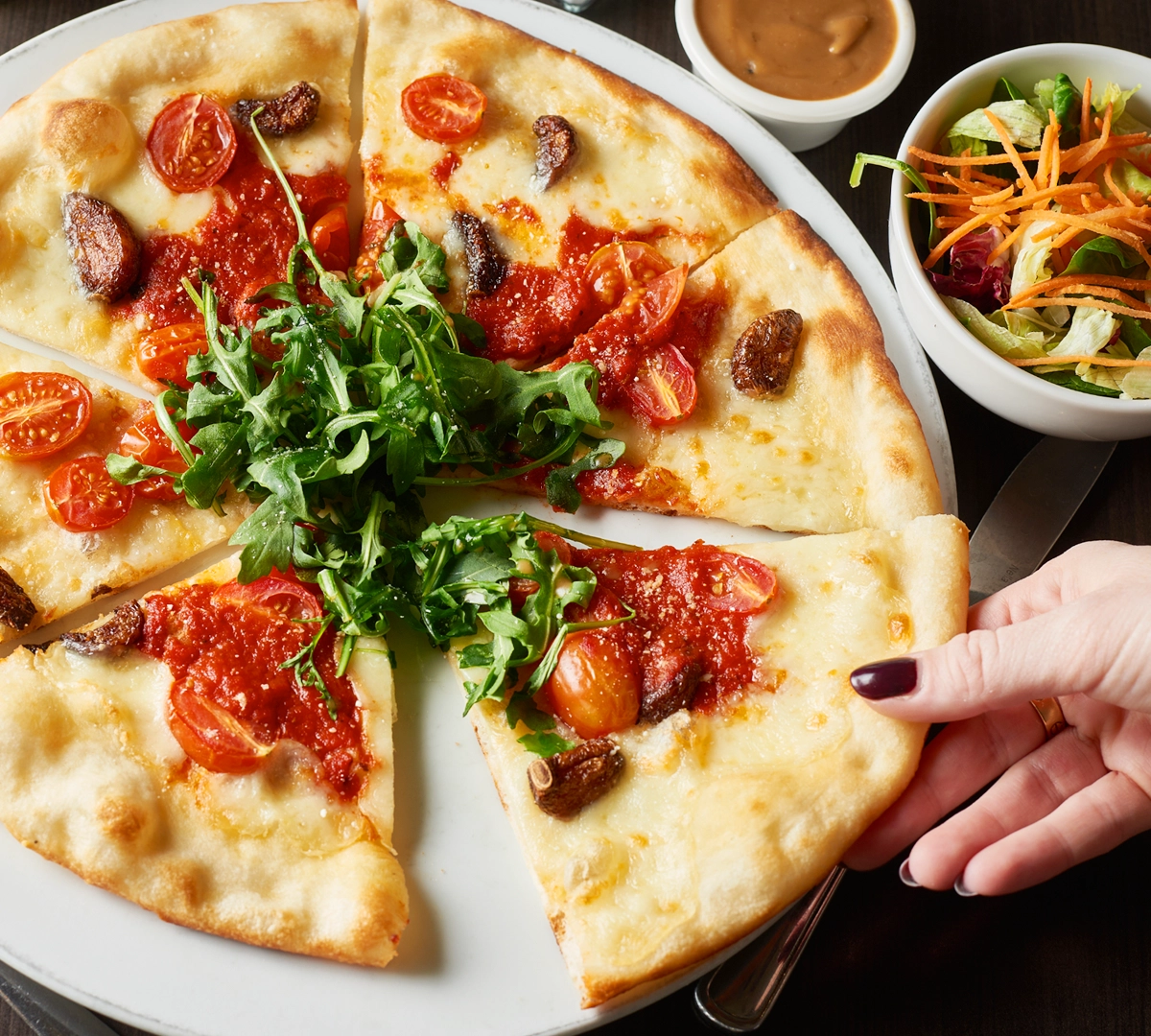 tomato sauce, mozzarella, parmesan, tomato, pepper, caramelized onions, fresh herbs 21.95